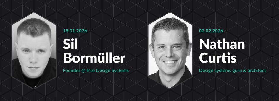 More design system leader interviews are coming very soon, we’ve been chatting to Sil Bormüller, founder at Into Design Systems and Design Systems guru Nathan Curtis. Make sure you have subscribed to the newsletter so you don’t miss out when these get published.
